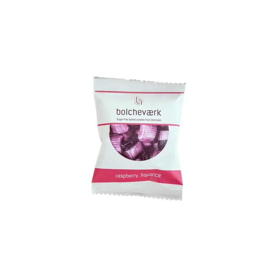 Hindbær og Lakrids - Sukkerfri bolcher - Flowpack - Bolcheværk