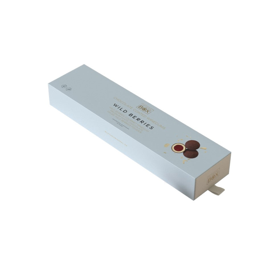 Tag på en smagsmæssig rejse til den vilde skov med The Original Box gelatinefri Skovbær vingummi af bedste kvalitet. Disse lækre vingummier er indhyllet i premium hvid chokolade og rullet i ufortyndet skovbærpulver af højeste kvalitet. Med en autentisk blanding af friske og vilde bær vil deres vingummier give dig en smagsoplevelse, der er næsten magisk. Skabt uden at gå på kompromis med hverken smag eller kvalitet, er deres Skovbær variant den perfekte søde overraskelse. Lad dig forføre af den naturlige friskhed og den cremede hvide chokolade i hver bid.