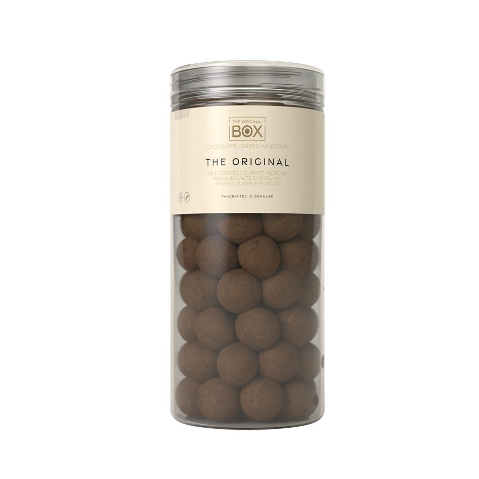 Forkæl dine smagsløg med The Original Box gelatinefri Skovbær vingummi af bedste kvalitet. Disse lækre vingummier er indhyllet i premium hvid chokolade og rullet i ufortyndet lakridspulver af højeste kvalitet. Med en kombination af friske bær og intens lakrids vil deres vingummier pirre dine smagsløg. Skabt uden at gå på kompromis med smag eller kvalitet, er vores Skovbær variant en udsøgt godbid. Lad dig forføre af den naturlige friskhed, den cremede hvide chokolade og den pikante lakridssmag i hver eneste bid.