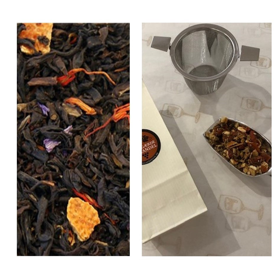 Ingredienser: Sort te, orangeskaller, safranblomster, katostblomster og aroma.