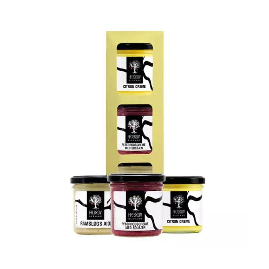 Påske Kit fra Hr. Skov er en sød og hyggelig gaveæske der indeholder 3 nøje udvalgte glas lige til at sætte på påskebordet. Der medfølger inspirationskort fra Hr. Skov med nye spændende opskrifter og ideer til hvordan du kan twiste det tradtionelle påskebord med delikatesserne.