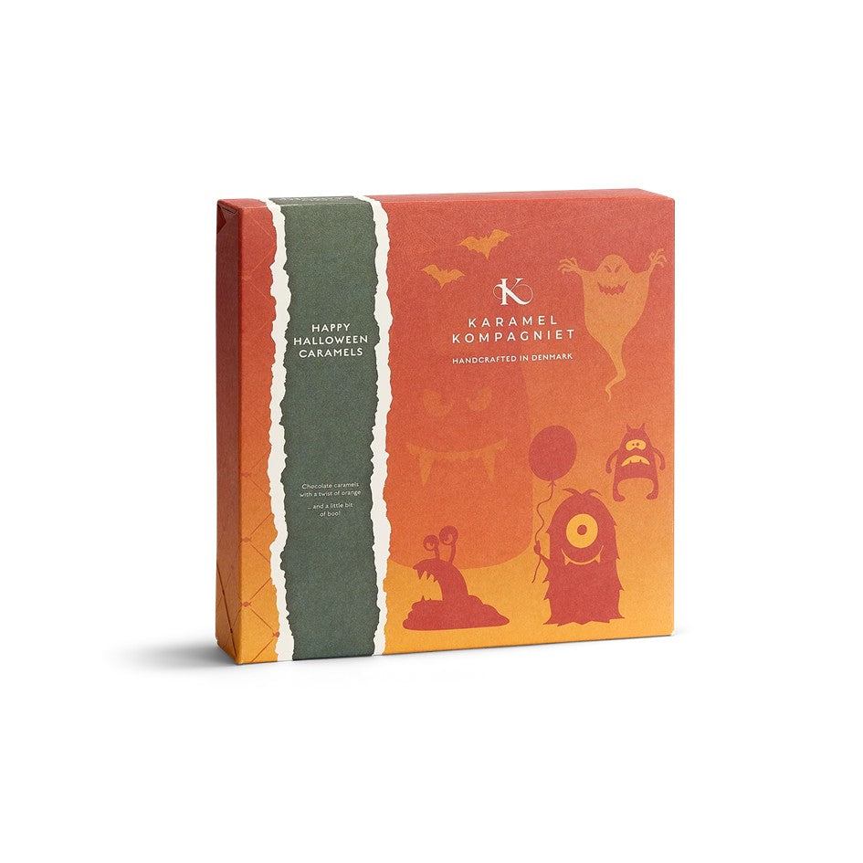 Bøh!... Er du klar til en uhyggelig god karamel? Vi har taget Karamel Kompagniets Klassiske Chokoladekaramel og givet den et twist med karamelsmag af appelsin.