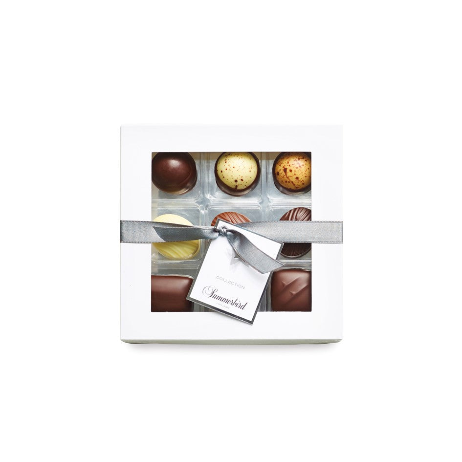 Collection 9 indeholder 9 forskellige varianter af Summerbirds raffinerede, klassiske fyldte chokolader. Æsken byder på en verden af velsmag i form af f.eks. marcipan, praliné, mint og karamel. En æske, der ikke kun fungerer perfekt som gave, men i den grad egner sig til alle, som sætter pris på velsmag og høj kvalitet.